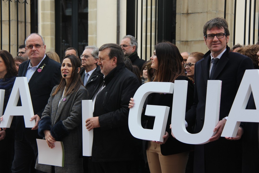 En Bilbao, la lectura de la declaración ha corrido a cargo de Itxaso Atutxa, presidenta del Bizkai Buru Batzar; Mireia Zarate, secretaria del EBB; Ana Otadui, presidenta de las Juntas Generales de Bizkaia; Ibone Bengoetxea, diputada de Administración Pública y Relaciones Institucionales de la Diputación Foral de Bizkaia; Nekane Alonso, concejala delegada del Área de Cultura del Ayuntamiento de Bilbao; Miren Araneta, burukide responsable del Área de Igualdad del BBB; Ana Esther Furundarena, burukide responsable del Área de Educación, Euskara, Deporte y Cultura del EBB; y Oihane Agirregoitia, concejala delegada del Área de Juventud y Deporte del Ayuntamiento de Bilbao. A la concentración, asimismo, han asistido el alcalde de Bilbao, Juan Mari Aburto; la consejera de Desarrollo Económico y Competitividad, Arantxa Tapia; el presidente de Eudel y alcalde de Getxo, Imanol Landa; el portavoz del Grupo Vasco en el Congreso, Aitor Esteban; los burukides del EBB María Eugenia Arrizabalaga, Koldo Mediavilla y Joseba Aurrekoetxea, entre otros.