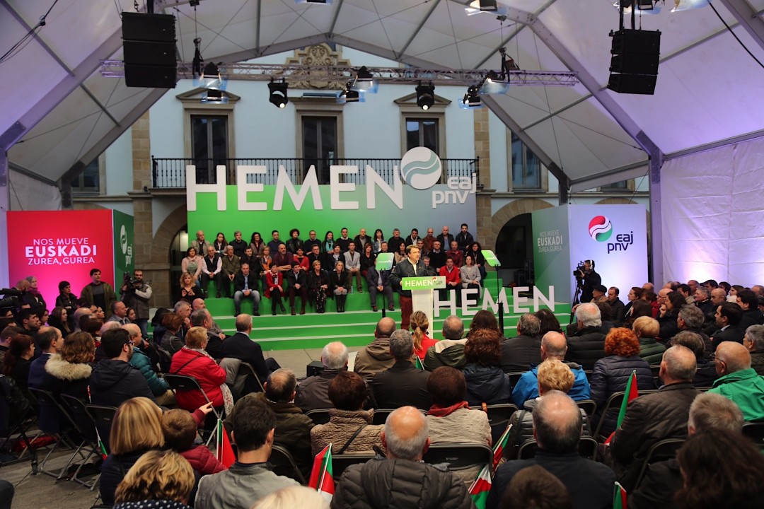 Andoni Ortuzar, presidente del Euzkadi Buru Batzar, ha querido lanzar un mensaje sencillo pero contundente al conjunto de la ciudadanía vasca. “Si el PNV es el que decide en Madrid tras el 28 de abril, las tres derechas van a seguir bien torcidas y en la oposición”, ha asegurado el líder jeltzale en el acto político que EAJ-PNV ha celebrado en la Herriko Plaza de Amorebieta-Etxano. “Hay una forma de parar en seco a Rivera, a Casado, a Abascal, a toda la derechona: llevarles a la irrelevancia. Utilizan a Euskadi como un ‘kleenex’: nos usan y nos tiran. Pero las vascas y los vascos les vamos a dar en las narices el 28 de abril. En este País no son nada y van a ser aún menos electoralmente, pero tenemos que conseguir que el Grupo Vasco sea fuerte en Madrid, influyente, decisivo, para que tampoco sean relevantes en las próximas Cortes Generales”, ha asegurado Ortuzar. Aitor Estaban e Idoia Sagastizabal, número 1 y 2 de la lista por Bizkaia al Congreso de los Diputados, también han intervenido en el mitin de esta tarde. El portavoz jeltzale ha citado la “transparencia y el respeto a la memoria histórica” como dos de las muchas razones “que hay para ir a Madrid a defender los intereses vascos”.