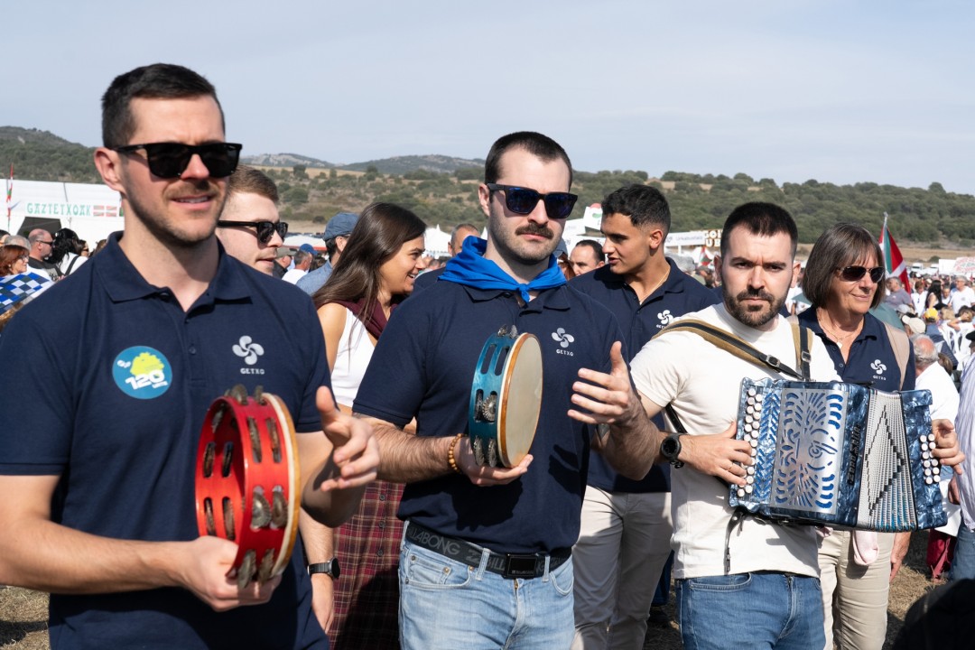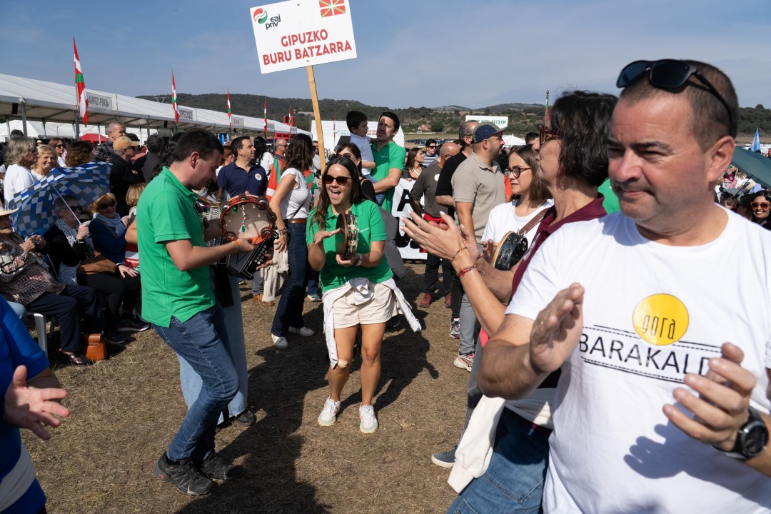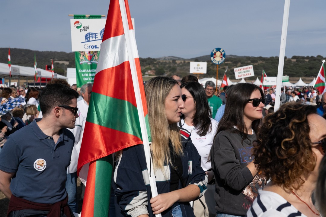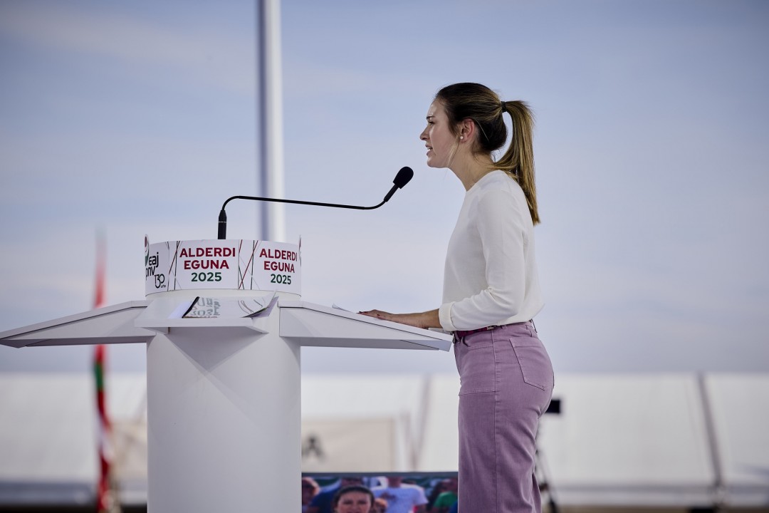 El acto político lo ha abierto Iraia Pinedo, militante de Euzko Gaztedi-EGI, que ha dicho que "GKS, Ernai y los movimientos de extrema derecha llenan las plazas de discursos vacíos. Pero Euskadi no se construye sobre simples gritos: menos historias y más propuestas. ¡Menos excusas y más compromiso con Euskadi! Las y los jóvenes jeltzales somos el futuro del País”. Además, Pinedo ha remarcado que “tenemos claras nuestras demandas” y ha puesto el foco en la vivienda: “Queremos viviendas asequibles, y el PNV está trabajando para crear oportunidades para las y los jóvenes, ofreciendo avales para poder comprar nuestra primera casa, promoviendo nuevas viviendas... Ahí está el compromiso real”. Además de la vivienda, la representante de EGI ha defendido el empleo digno, el euskera, la igualdad, la identidad nacional vasca y “el derecho a decidir nuestro futuro”.