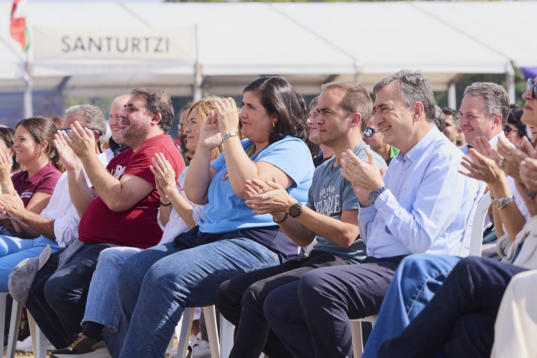 También, ha dicho, hay que trabajar por contar con una economía vasca fuerte sostenida por una industria, la ciencia y la tecnología sin olvidar de garantizar la seguridad integral del País a todos los niveles: energética, tecnológica, climática, alimentaria, de salud pública y la seguridad ciudadana. A este respecto, ha advertido que “no vamos a permitir, que nuestras hijas, amamas o aitites no puedan andar tranquilos por los pueblos de Euskadi” para, a renglón seguido, lanzar un mensaje de apoyo a la Ertzaintza. “Os pido confianza porque en este País estamos haciendo los deberes”, ha concluido como mensaje final.