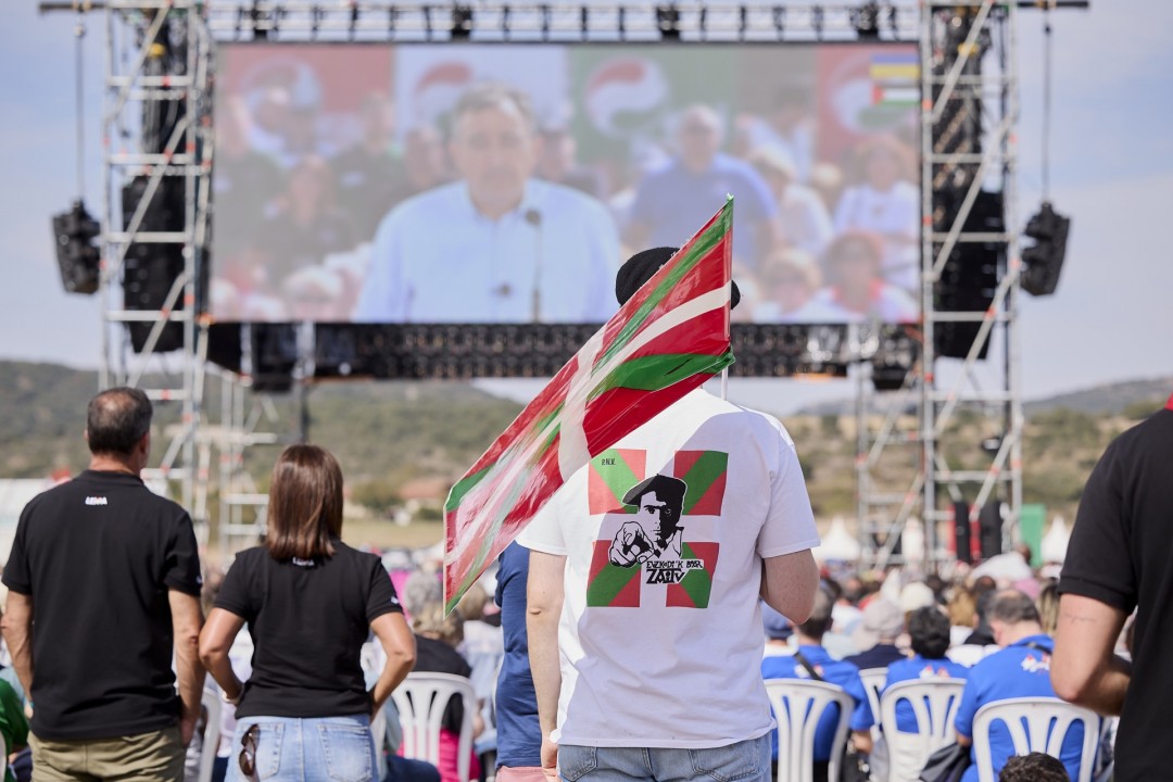 En un discurso en el que el presidente del EBB ha empleado el francés para dirigirse a la afiliación en Iparralde y el inglés para decirle a Europa que “Euskadi exige su lugar como nación”, el presidente del EBB ha reivindicado la posición central de EAJ-PNV en el tablero político y su legado tras 130 años de trayectoria política “intachable”: “El legado de nuestra tradición política es que hemos construido un País confiable: es el resultado de décadas de compromiso político, de decisiones valientes, de cuidar lo que funciona y corregir lo que no. (…) Nuestro País no es perfecto, lo sabemos. Pero sí que podemos decir que hemos construido sin gritar, con rumbo fijo, buscando soluciones y respondiendo siempre con coraje, serenidad y compromiso. Si hoy algunos se visten de responsabilidad es porque saben que este País confía en quien ha estado cuando había que estar. Y eso, les guste o no, lo representa EAJ-PNV”.