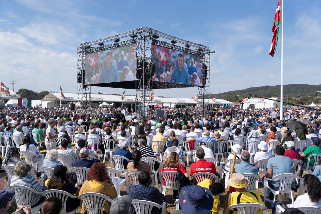 Este ha sido el principal mensaje que el presidente del Euzkadi Buru Batzar, Aitor Esteban, ha lanzado este mediodía a los miles de afiliadas, afiliados y simpatizantes de EAJ-PNV que se han acercado a las campas de Foronda para acompañar a EAJ-PNV en su gran encuentro anual, el Alderdi Eguna. Esta 49ª edición, bajo el lema 'Batzen gaituzten hariak' ('Los hilos que nos unen'), ha sido “redondo”, ya que ha tenido un formato innovador con un nuevo escenario en el centro de las campas de Foronda, demostrando que EAJ-PNV es un partido dinámico, que evoluciona con la sociedad.