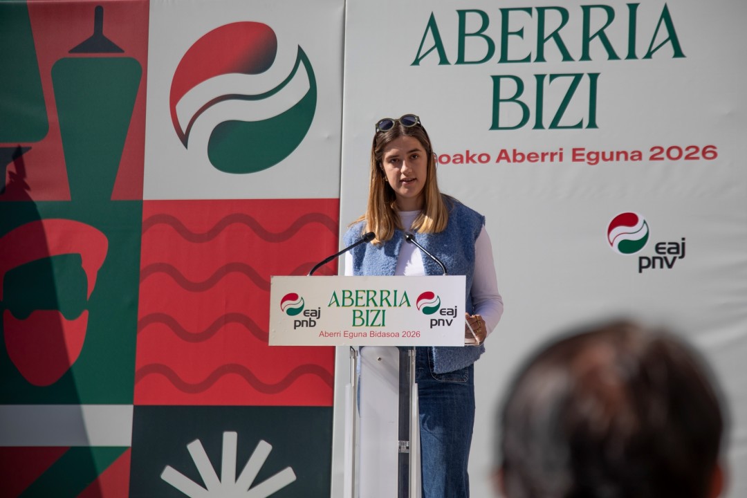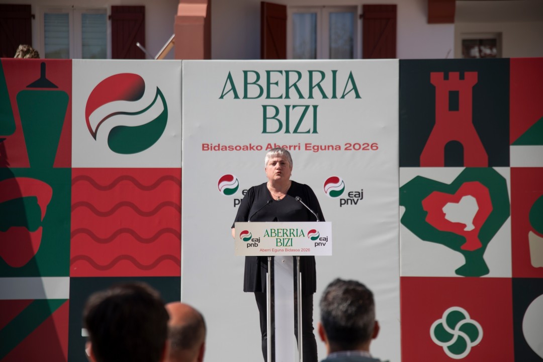 Las nuevas generaciones de vascos y vascas hacen vivir nuestra Patria. Esa idea y ese sentimiento no dejan de crecer en Ipar Euskadi. Marie Tellechea ha sido la representante de EGI, la organización juvenil del PNB de Iparralde, y ha defendido "una sociedad más justa": "Esta solidaridad cobra todo el sentido en un territorio donde la población genera saberes, nuevas ideas y riqueza de forma conjunta. Hagamos vivir a nuestro país con juntos y juntas. ¡Viva la patria! Reafirma nuestra base democrática, un modelo amenazado, sobre todo por las relaciones de fuerzas entre los estados".
