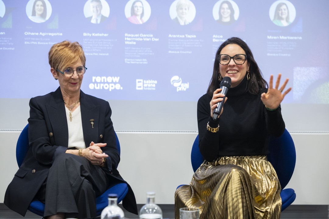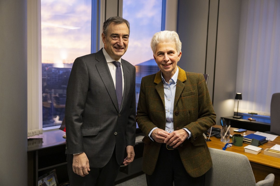 Bileraz eta arduraz beteriko egunean, Esteban Europako Parlamentuan izan da Oihane Agirregoitia eurodiputatuarekin eta Miren Martiarena burukidearekin, eta bertan batzartu dira Renew Europe parlamentuko taldearen presidente Valérie Hayerrekin; Europako Alderdi Demokrataren idazkari nagusi Sandro Gozirekin; ALDE Partyren presidente Svenja Hahnekin, Segurtasun eta Defentsarako batzordearen buru Marie Agnes Strack-Zimmermannekin; eta Renew Europeren presidenteorde Gerben-Jan Gerbrandyrekin. Arratsaldean, berriz, EBBren burua Berlaymonten izango da, Europar Batzordearen egoitzan, eta bertan batzartuko da Zabalkunde komisario Marta Kosekin eta Garraio Jasangarri eta Turismo gaietarako komisario Apostolos Tzitzikostasekin.